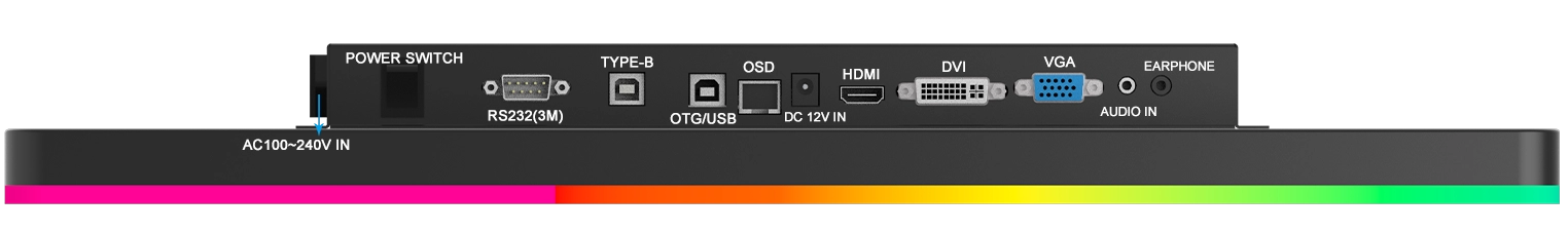 디스플레이 포트 1: 이어폰, 오디오 입력, VGA, DVI, HDMI, DC 입력, OSD, TYPE-B(USB), OTG, RS232(3M)