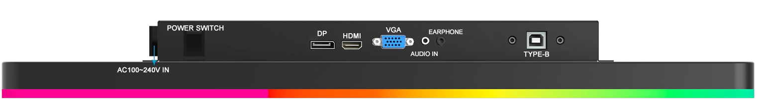 디스플레이 포트 2개: 이어폰, 오디오 입력, VGA, HDMI, DP, USB 타입 B(USB), AC 100V~240V 입력